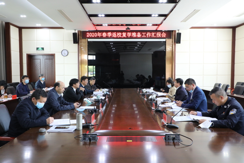 会上,周志春代表学校从加强疫情防控组织领导、精准排摸师生健康情况、制订完善工作方案、强化物资储备、开展线上教学等方面汇报了学校前期防疫工作开展情况,同时,通过解读开学工作方案、日常防控方案、应急预案等汇报了学校开学准备工作推进情况。