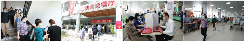 在场景一和场景三中,模拟了学生以班级为单位,分别从宿舍楼、教学楼依次出发,前往南、北区学生餐厅就餐,以及就餐后,在工作人员引导下,前往教学楼上课和返回寝室休息的情境。