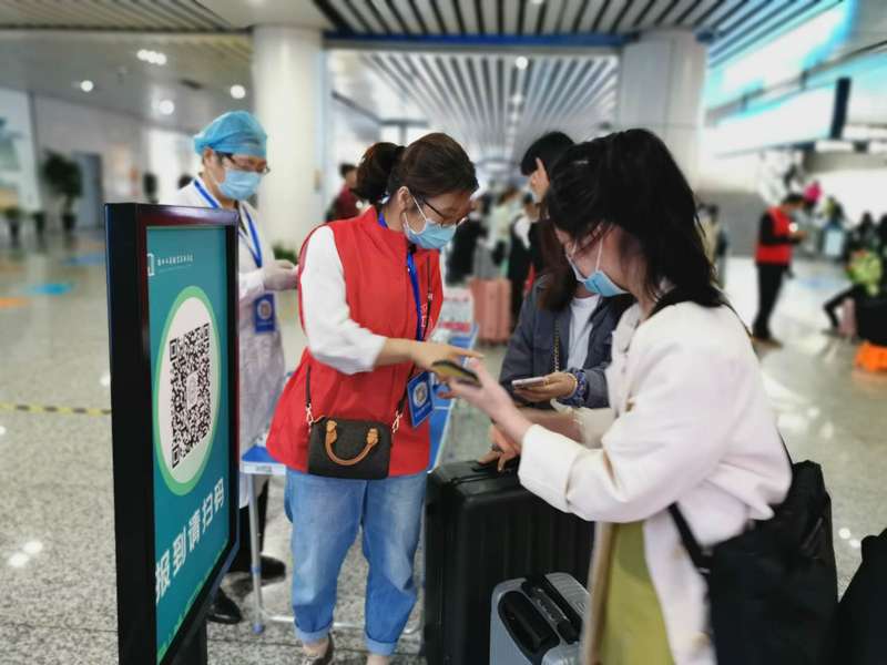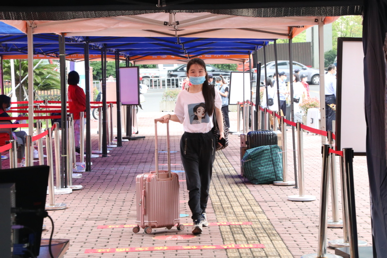 学校在火车南站、客运中心站、学校东、西校门分别设立迎新接待点,学生们在经过身份核实、体温检测、扫码入住、行李消杀等环节有序入校,报到现场井然有序。