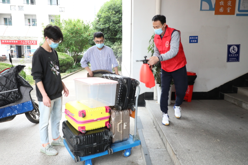 各行政部门教职工、后勤保卫人员、各学院的教职工们等约300人披上红马甲,组队化身志愿者,在返校报到一线迎接学生,做好接站服务、秩序维持、引导提醒、行李消毒运送等工作,协助同学们完成返校的各项程序,全方位为广大学生贴心服务,成为闪耀在校园内外的亮丽“一抹红”。