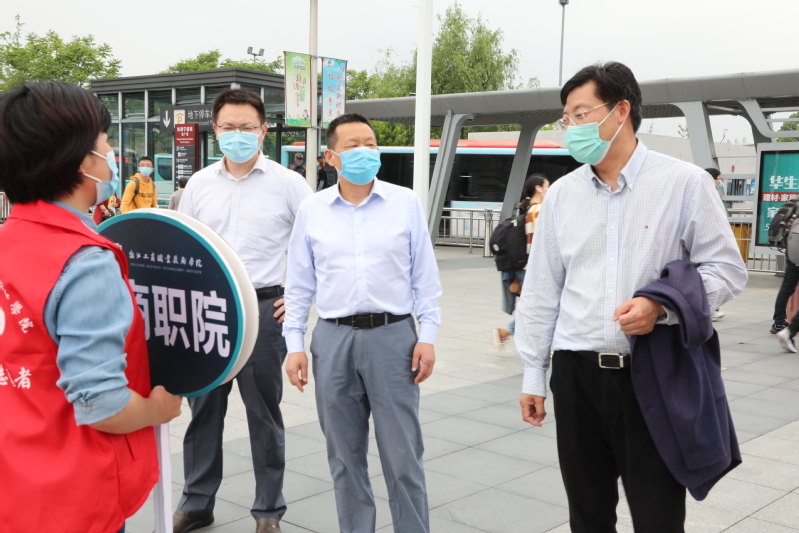 在返校报到现场,党委书记陈仕俊、校长周志春等校领导在学校两处进校入口、公寓楼、食堂等重点区域进行巡查,认真查看防疫措施落实情况,现场指导返校报到和疫情防控工作,看望慰问返校学子和志愿者。宁波市教育局人事处处长卢涛、市公安局国保支队支队长吴坚国,以及驻校健康指导员也走进校园,对学校的防疫工作进行现场指导。