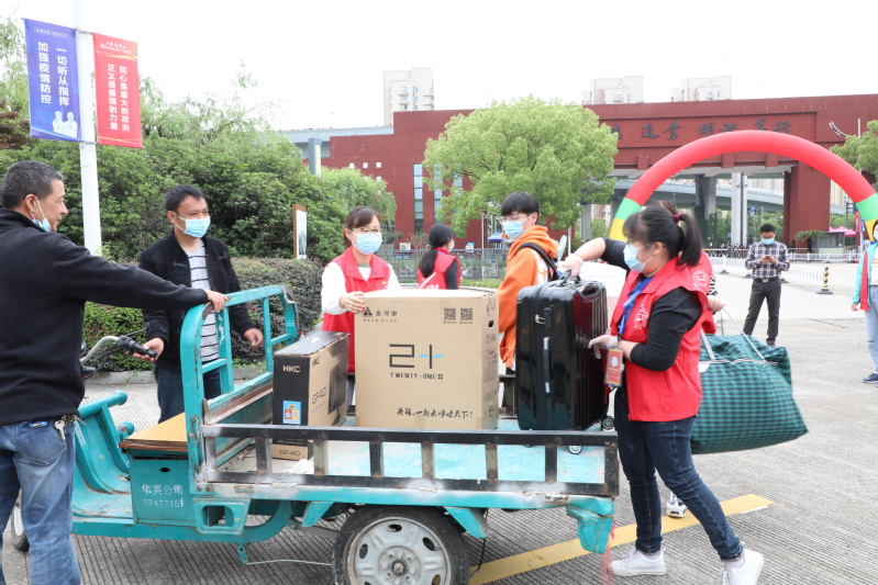 从5月7日开始,宁海、慈溪两个校区也陆续迎来了各批次返校报到的学生。在宁海火车站、余姚北站,以及两个校区的防疫重点区域,教职工们全力以赴地做好学生返校服务工作,让久别重逢的学子感受到学校大家庭的温暖。