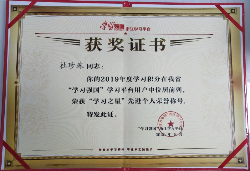 本次“学习之星”先进个人和先进组织经过严格的推荐评选,获得学习之星荣誉的个人和组织在全省学员和组织中名列前茅,宁波市仅有2人入选学习之星先进个人。