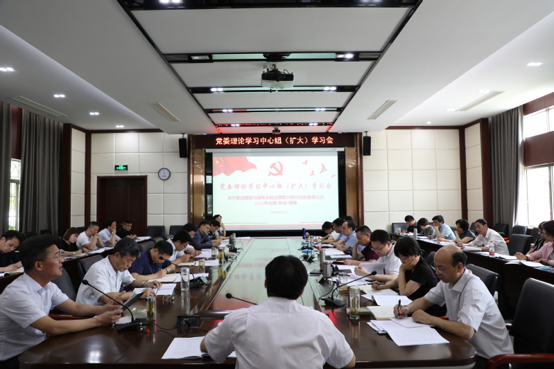 6月2日下午,学校举行党委理论学习中心组(扩大)学习会,专题学习习近平总书记关于坚持和完善中国特色社会主义制度、推进国家治理体系和治理能力现代化的重要论述和2020年全国两会精神。党委理论学习中心组成员、各职能部门负责人、各分院院长、党总支书记参加。党委副书记、校长周志春主题发言,相关部门负责人代表作了讨论发言。会议由党委书记陈仕俊主持。