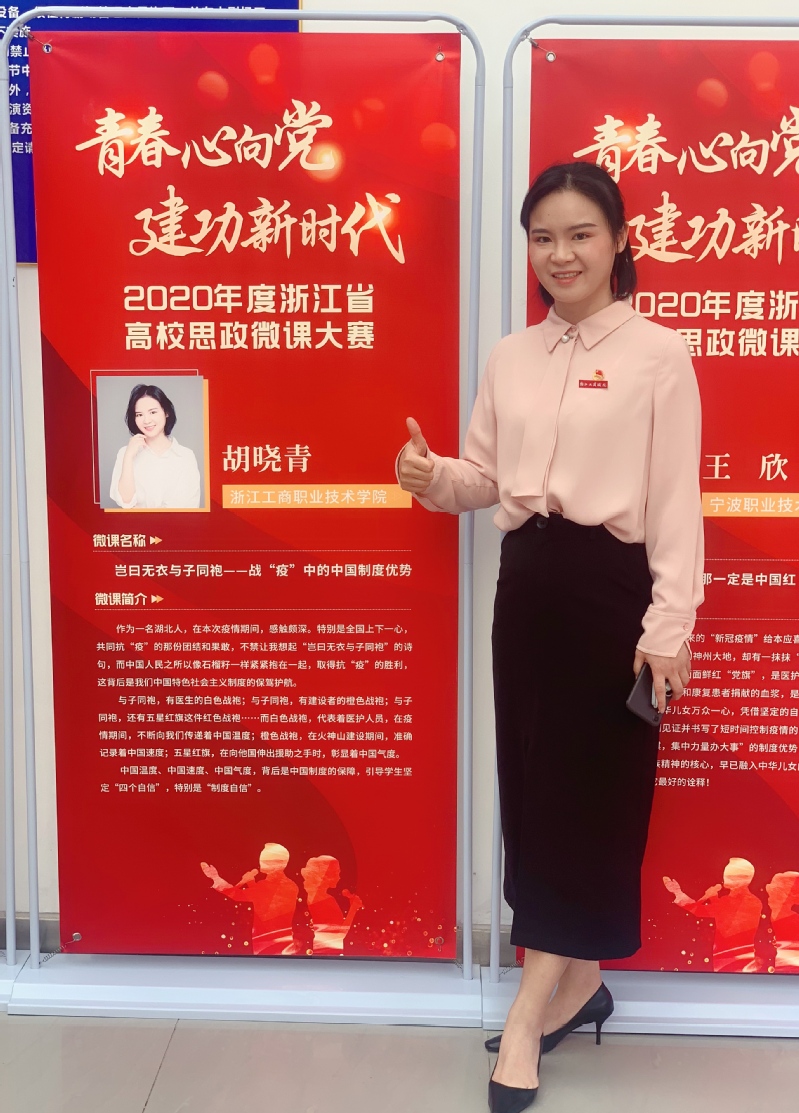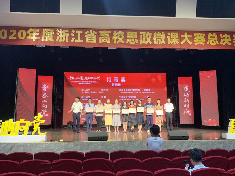 6月17-19日,2020年度浙江省高校思政微课大赛总决赛在金华举行,我校选送的青年教师胡晓青从全省各大高校选送的544个作品中脱颖而出,荣获大赛特等奖,并作为高校代表(全省仅6人)参与现场思政公开课巡讲活动。我校唐跃英老师获二等奖,李文文等3名学生获三等奖。