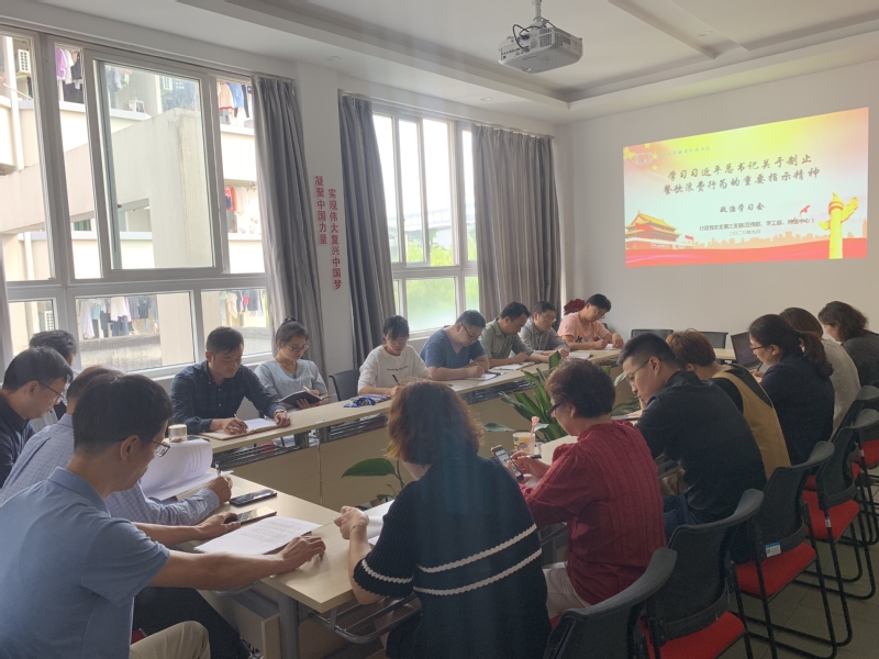 9月27日上午,行政党总支第三支部举行多部门联合政治学习会,专题学习习近平总书记关于坚决制止餐饮浪费行为的重要指示精神。党委副书记俞位增,行政党总支第三支部全体党员,以及宣传部、学工部(学生处)、团委、网络管理与信息中心等部门全体教职工参加学习会。学习会由支部书记郑芳主持。