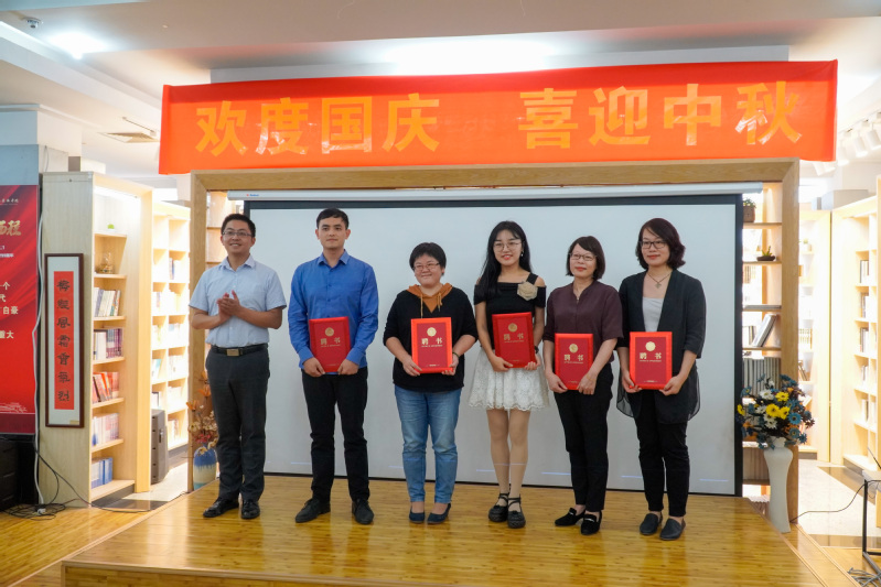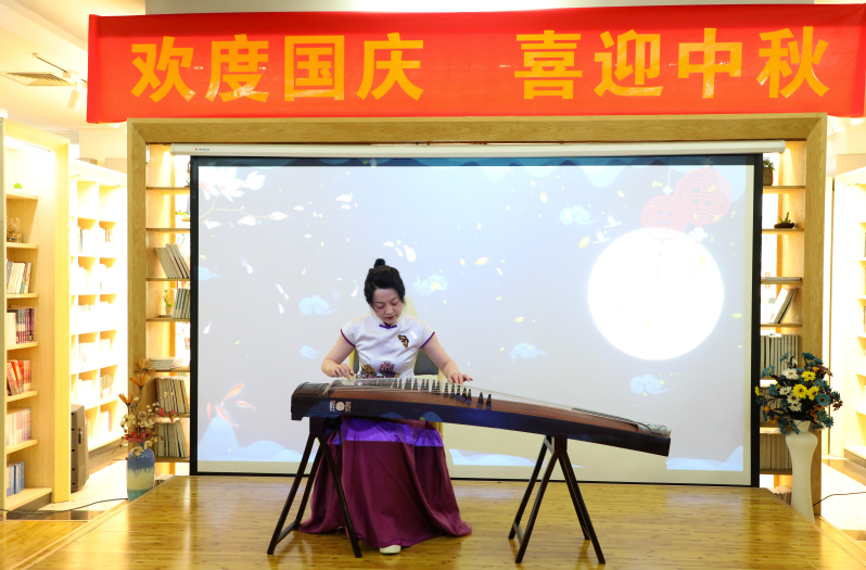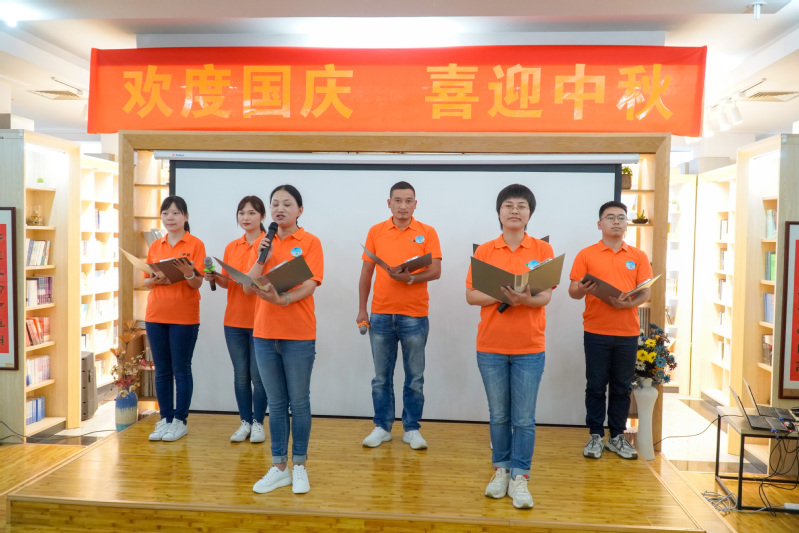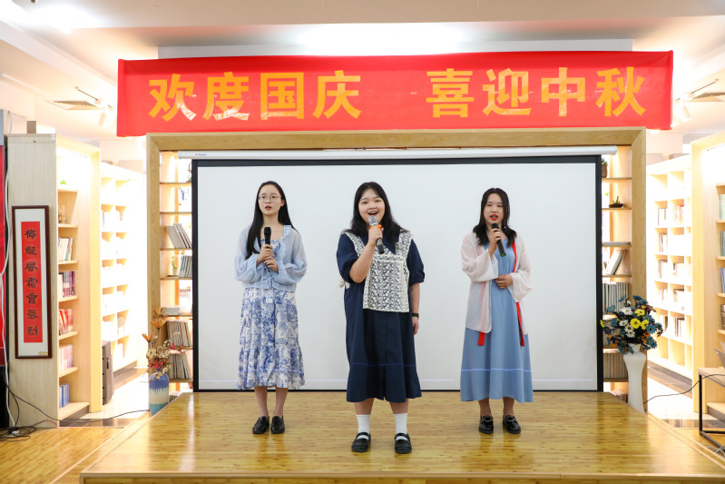随后进行的文艺演出精彩纷呈,学校国际交流学院任卓君老师用中英文生动讲述了悠远流长的中秋故事,带领在场师生赏析了古今中外名人名家的观月心语;由海曙区图书馆带来的诗朗诵《天堂就是图书馆》,使大家感受到图书馆人的人文精神和情怀;海曙区图书馆选送的古筝独奏《花好月圆》,唯美动听的旋律让人惊艳。最后大家齐声同唱经典歌曲《歌唱祖国》,奋进豪迈的歌声中凝结了师生们的爱国之情和赤子之心,现场的气氛推向高潮。