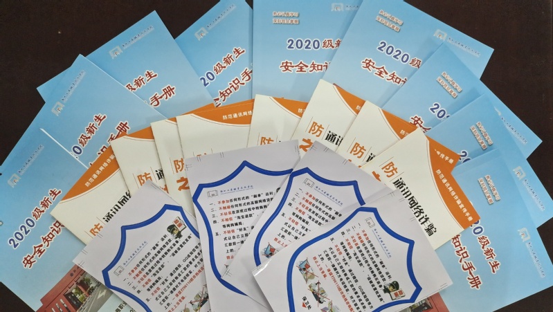 早在7月份,结合招生工作,制作发放了4500份《2020级新生安全知识手册》,内容以防范电信网络诈骗为主,分入学篇、消防篇、交通安全篇、食品安全篇等10个专题,为新生提供各类安全防范注意事项,提升了他们的安全防范意识。