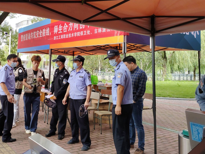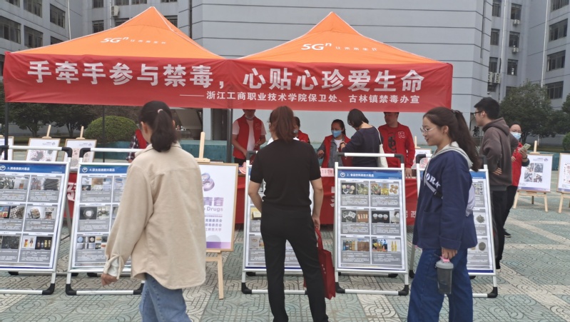 利用新生报到的机会,我校联合古林派出所,开展了以“警校联动共筑安全防线,师生合力同创平安校园”为主题的安全宣传活动,向新生发放防诈桌贴等宣传资料,进行防范技能讲解,合力打牢新生安全意识防线。随后又联合宁波市和海曙区两级禁毒办,在校内开展为期20天的《全省大学生多媒体设计竞赛优秀禁毒作品》巡展活动,以打动人心的设计作品向师生开展禁毒宣传,拓展了宣传方式,营造了良好的禁毒防毒氛围。