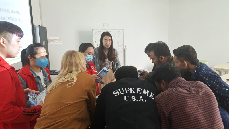 10月15日,我校又同古林镇禁毒办联合开展了以“手牵手参与禁毒,心贴心珍爱生命”为主题的毒品展示和防范宣传活动,为师生讲解如何识别并远离新型毒品,发动师生共同参与禁毒,守护好美好生活。同时,宣传活动还走进了留学生的课堂,近距离为留学生进行禁毒宣传,得到了留学生的热情响应,达到了良好的宣传效果。