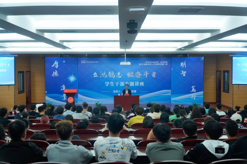 10月21日下午,由学工部、团委举办的“我与校长面对面”系列活动、第28期新世纪人才学院开班第一讲——“立鸿鹄志 做奋斗者”学生干部专题讲座在中和楼217报告厅顺利举行,党委副书记、校长周志春与线上线下万余名青年师生畅谈理想、共话担当,宣传部、学工部、团委负责人以及各学院党总支(副)书记出席现场活动。