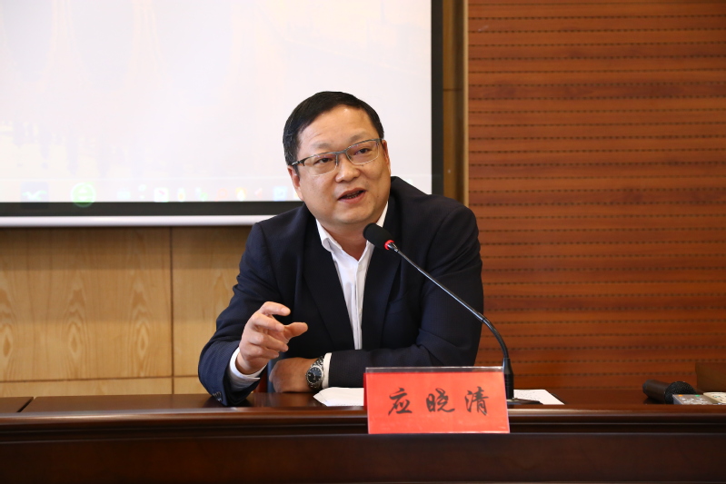 应晓清首先对童明荣对我校科研工作的关心和大力支持表示感谢。他指出紧跟时代脉搏,提高研究成果的应用价值是我们学校一直以来的努力方向,充分肯定了政策咨询研究对教师科研成果转化和我校社会服务能力提升的现实意义,并介绍了近年来我校社科研究取得的成绩。