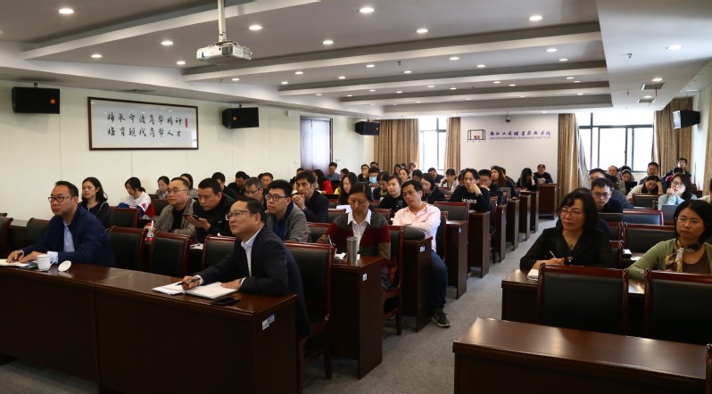 10月30日上午,学校“科研能力提升系列活动”第二期专题报告会在中和楼1007报告厅举办。本期活动主题为“政策咨询研究”,诚邀了政策咨询研究专家、宁波市社科院副院长童明荣作专题报告。会议由党委委员、副校长应晓清主持,近80名教师踊跃参加。