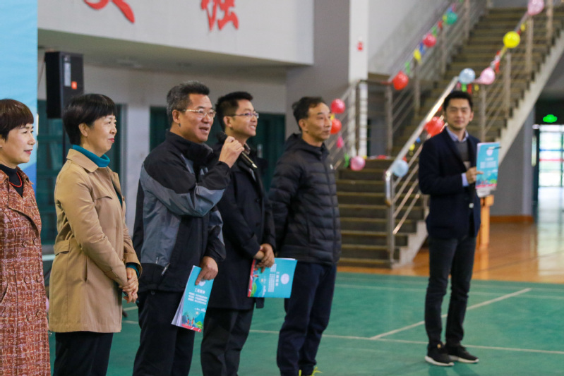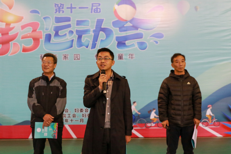 在欢乐的音乐声中,周志春宣布校第十一届教工亲子运动会开幕。