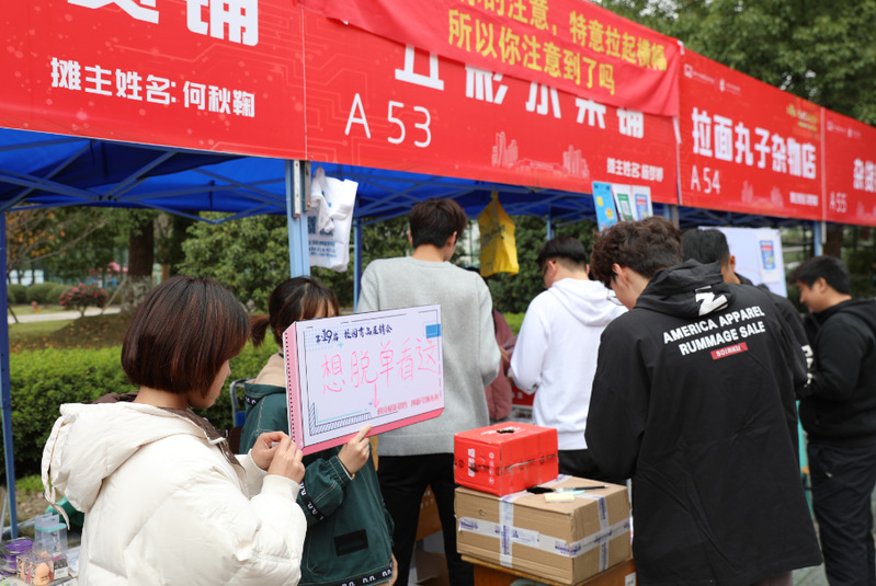 “芭比的梦幻城堡”“哆啦A梦的口袋”“咕噜咕噜”……学生摊主们都为自己的商铺取了别出心裁的名字,还纷纷推出了奖品赠送、集赞优惠等促销方式,更有用戴上玩偶头套、悬挂趣味广告语等方式吸引和招揽顾客。三天以来,展销会总销售额达到12万余元,还得到了学习强国、中国青年报客户端、中国网、中国教育在线等各级各类重要主流媒体的关注和报道。
