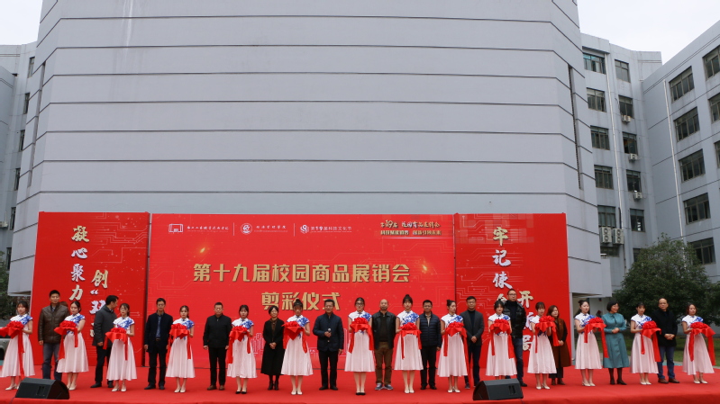 2020年12月9日—11日,我校举办了第十九届校园商品展销会。本次校园商品展销会由教务处、学工部、团委主办,经济管理学院承办,以“科技赋能销售 创新引领未来”为主题,共设立110个摊位,分别为精品营销区、专业实践区、直播带货区、精准扶贫区、校企合作区共五大区域。9日下午,校长周志春,党委副书记俞位增、副校长徐盈群,党委委员、组织部(统战部)部长谢骏,以及相关职能部门负责人、各分院负责人等出席展销会开幕式。