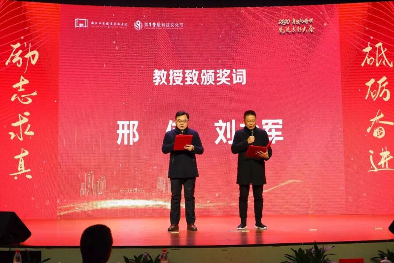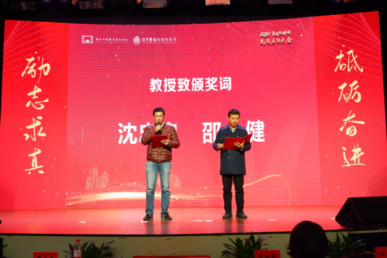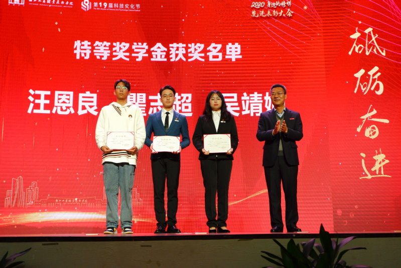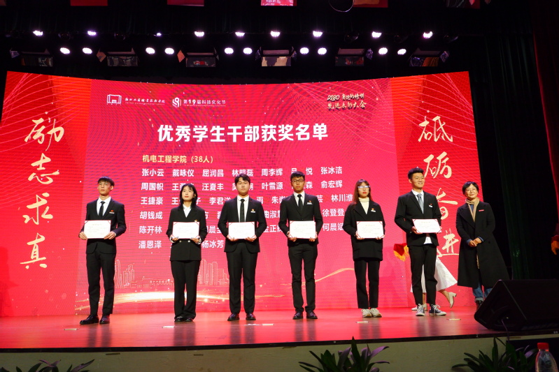 大会对获得国家奖学金、学生普通奖学金、学生优秀系列、创业扶助奖学金、寝室奖学金、先进班级等先进个人和集体进行了表彰。对在2019-2020学年期间努力践行“立德树人”的优秀辅导员、优秀班主任、就业先进集体和个人进行了表彰。同时为科技文化节会徽设计获奖作品颁奖。