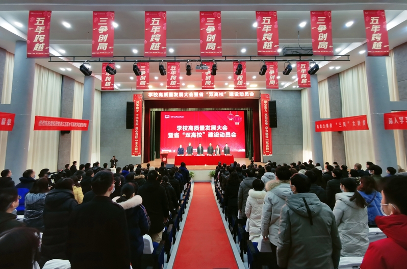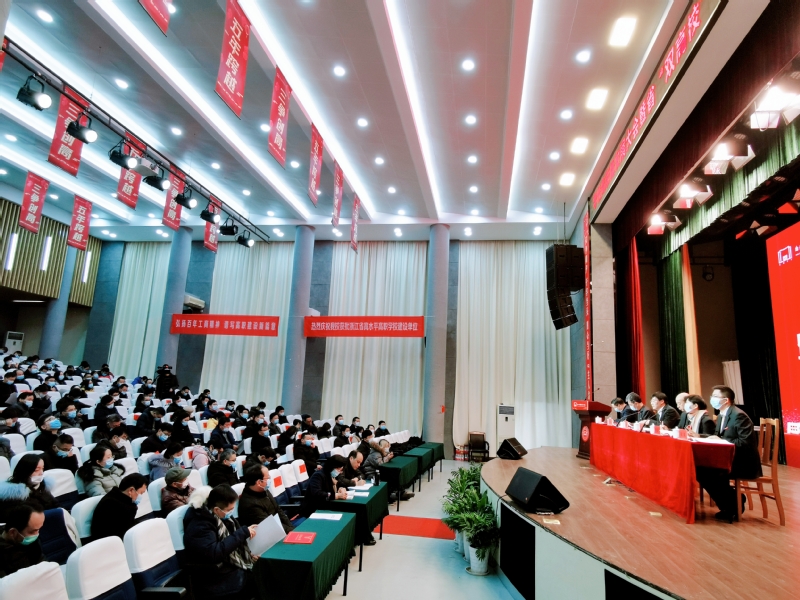 在学校被确定为浙江省高水平高职学校建设单位之际,为进一步凝心聚力、共谋发展、提神鼓劲、开拓创新,我校于2020年12月31日下午召开学校高质量发展大会暨“双高”校建设动员会,在校的校领导班子成员出席大会,全体教职工通过线上线下结合的方式参加。会议由党委副书记俞位增主持。