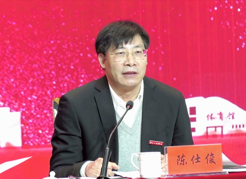 党委书记陈仕俊作题为《深入学习贺信指示精神 推动学校高质量发展》的动员讲话。他简要回顾了全校上下团结一心、艰苦奋战,化压力为动力,把“不可能”变成“可能”,最终成功入选省“双高”校的历程。他强调,在这欢欣鼓舞之际,我们也要清醒地认识到,“双高”申报成功不是终点,是建设的开端,全体教职工必须按照习近平总书记的贺信指示精神,“争时间、争任务、争贡献”,通过三年创建省“双高”,力争五年学校名次在省内位次前移,实现跨越发展。