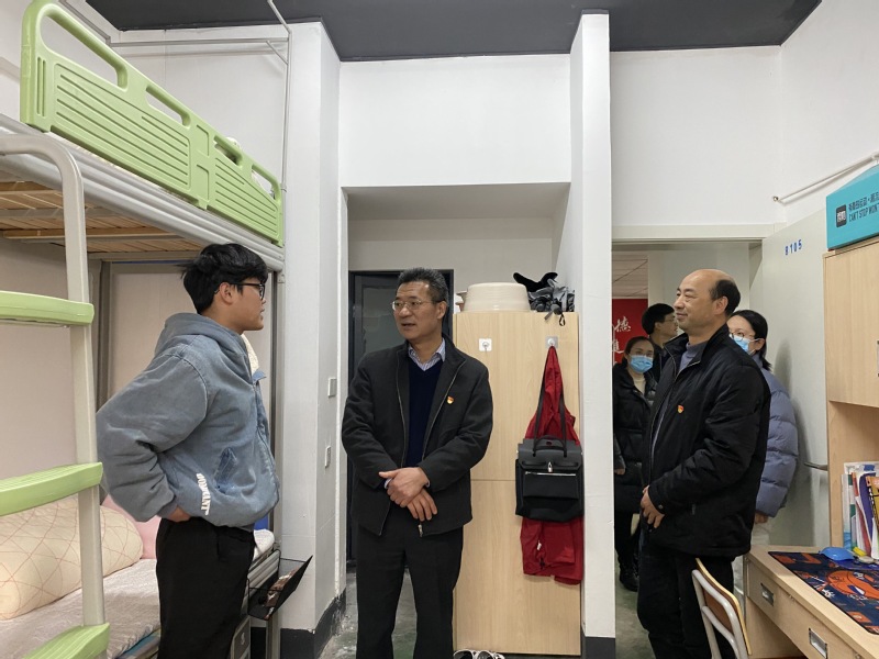 在学生宿舍,周志春等与学生拉起家常,特别是对返校后的学习安排、生活情况等一一详细询问,征求同学们对学校新学期的意见,送去新学期的祝福。同学们向校领导们认真介绍了自己的寒假生活、四六级考证情况、课程学习进展,对学校的关心表示感谢。