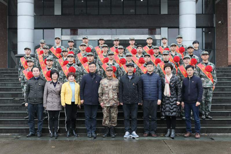 随后,谢浩军给新兵颁发入伍通知书,俞位增给入伍学生送上纪念品,任一波和各学院党总支书记为入伍学生佩带了光荣花。