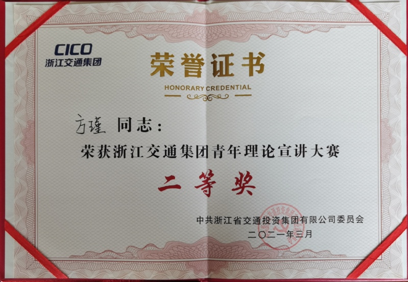 日前,为庆祝建党百年,深入学习宣传贯彻习近平新时代中国特色社会主义思想,浙江省交通投资集团有限公司举行青年理论宣讲选拔赛,来自集团公司各单位的45位选手经过初赛选拔后,有22位选手参加了决赛。我校明智学院的方瑾老师荣获二等奖,王国庆老师荣获三等奖。