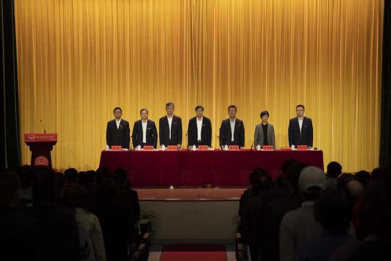 大会号召,全校教职工要在校党委的坚强领导下,以习近平新时代中国特色社会主义思想为指导,深入贯彻党的十九大和十九届二中、三中、四中、五中全会精神,同心同德、同向同行、苦干实干、携手奋进,牢记教育使命,奋进学校高质量发展新征程,以优异成绩庆祝中国共产党成立100周年。