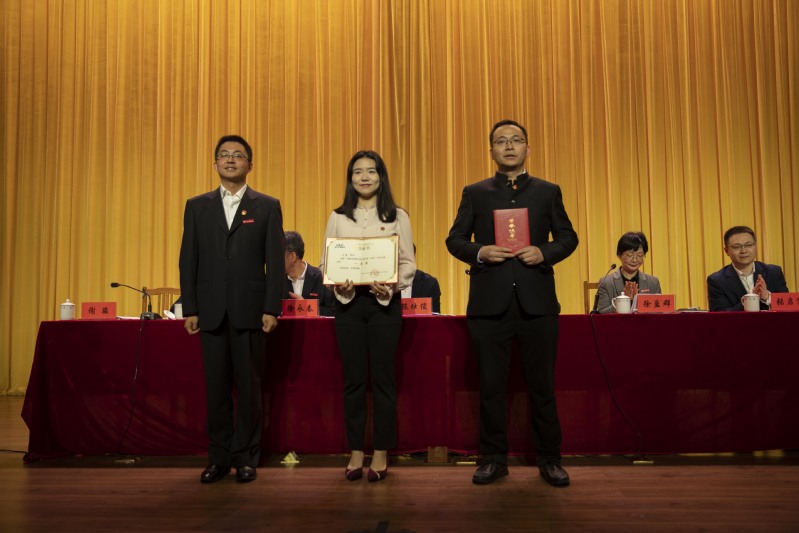 大会在雄壮的国歌声中拉开序幕。会上表彰了2020年度国家、省、市、校级先进集体和个人,校领导班子成员逐一为获奖代表颁奖。