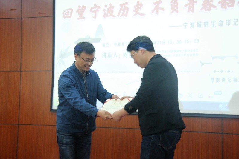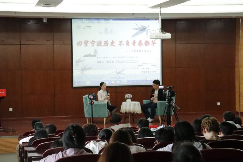 为深入学习贯彻习近平新时代中国特色社会主义思想,全面落实立德树人根本任务,对接学校“双高”建设任务,4月21日下午,我校在中和楼217开展了以“回望宁波历史,不负青春韶华——宁波城的生命印记”为主题的厚德讲坛活动。本次活动由学生工作部(学生处)主办,建筑与艺术学院承办,宣传部部长陈军强、学生处处长任一波,建筑与艺术学院党总支书记、副书记,辅导员等参加了本次活动。活动由建筑与艺术学院党总支副书记郭瑞涛主持,热爱宁波本土文化的青年学生们也纷纷报名参加,全场座无虚席。