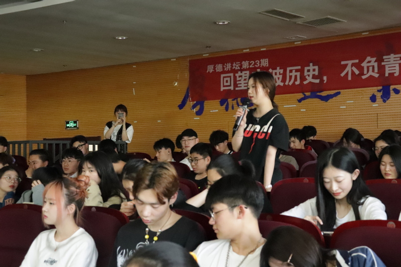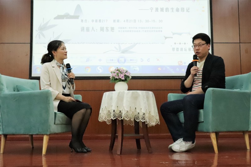 “周老师您更喜欢宁波的哪一段生命历程?”“是什么让您能够静心专注宁波城市文化研究?”“如果宁波是一个人,它是男生还是女生?”“宁波精神对当代大学生有什么样的指导意义?”……对于同学们的踊跃提问,周东旭一一予以耐心解答,还勉励同学们珍惜当下的学习机会,在时代的洪流中找到自身的价值,做中华优秀传统文化的传承者、发扬者。