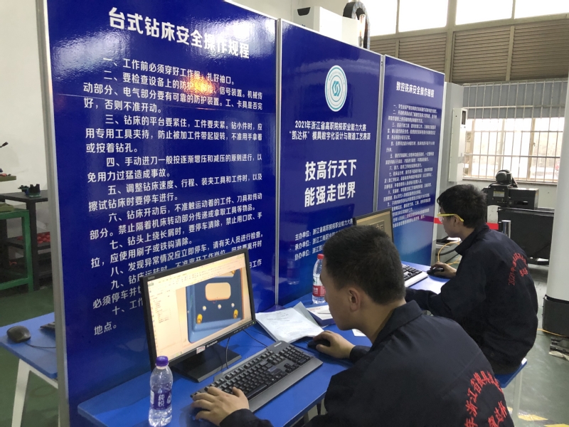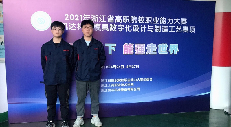 4月27日,2021年浙江省高职院校技能大赛暨全国职业院校技能大赛选拔赛“凯达杯”模具数字化设计与制造工艺赛项在我校宁海校区落幕。由我校机电工程学院徐新华、童宏永老师指导,丁民慧、王国民两位同学组成的代表队以第一名的成绩出线,顺利进入国赛。