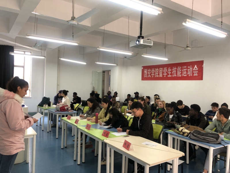 4月28日,国际交流学院首届留学生中华经典诵读竞赛决赛在22C5教室举行。13名留学生带着自己精心准备的朗诵作品参加比赛,近40名留学生观摩比赛。