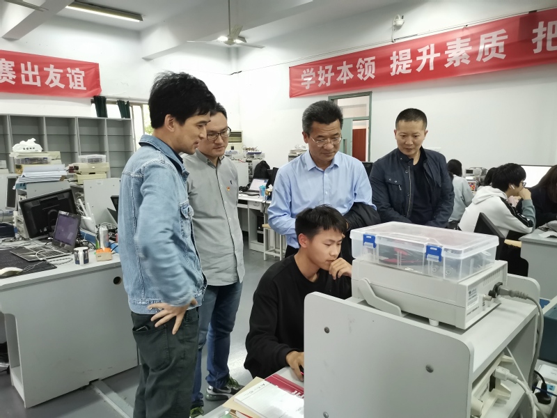今年的高职院校技能大赛是在经历“疫情”停赛和相关改革后,首次重新在全国范围内展开。从4月16日省赛通知发出,到4月30日竞赛,不到两周的准备时间,负责竞赛的何文荣、翁正国、张培忠、陈志栋等老师,克服时间紧任务重的困难,加班加点甚至通宵熬夜,辅导学生进行PCB设计、实物焊接、程序编写,整机联调等工作,参赛的同学也都鼓足干劲,夜以继日积极苦练。训练期间,周志春校长也亲临现场指导,为大家鼓劲加油。师生们更是鼓足干劲攻坚克难,最终再创佳绩,争得荣誉。