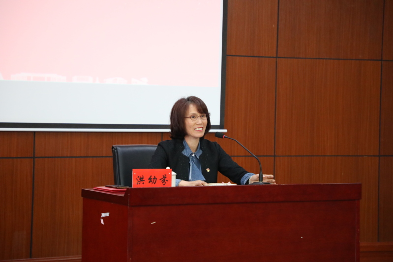 在随后一个小时的讲座中,洪幼芬以“扎根基层,振兴乡村”为主题,讲述了自任职以来,深入学习贯彻党的十九大精神,围绕大局,注重创新,与时俱进,努力为张家潭村经济社会和谐发展做出贡献的故事。在讲座中洪幼芬有力地分析了“狠抓经济,提高村民福利”、“精准扶贫,关爱帮助弱势群体”、“改善民生,确保实事工程顺利开展”、“奋战一线,加强精神文明建设”等相关内容。并通过一个个饱含真情的小故事的讲述,让在场师生真切的感受到了她扎根基层、用实际行动诠释一名农村党员干部的初心和使命。