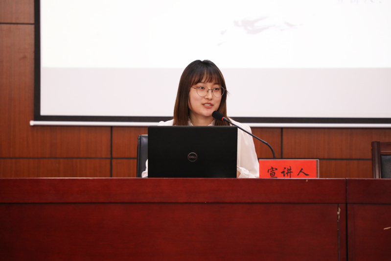 我校经济管理学院团总支书记唐跃英以现场折叠“红船”引入,借助93岁老革命战士李希明的故事生动阐释了共产党人对“红船精神”的遵循和践行,通过1921到2021,从“红船精神”到“抗疫精神”,阐释了中国共产党百年来带领全国人民励精图治,奋发向上,全心全意为人民服务不变的初心和使命,号召工商人既要传承“红船精神”,也要弘扬“工商精神”,在新时代的新征程上劈波斩浪,勇往直前。