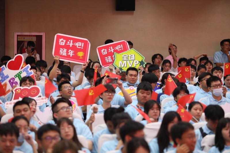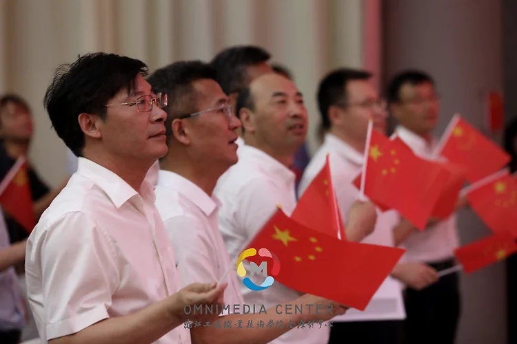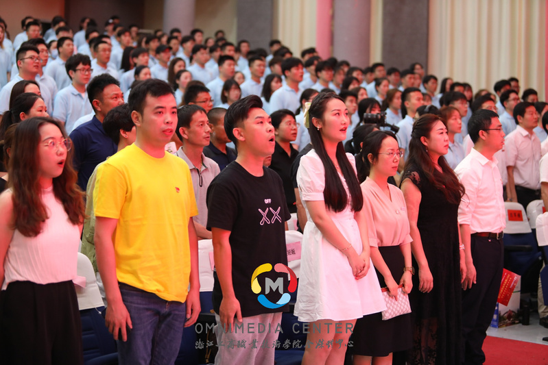 “国是我的国,家是我的家”,在热情高涨的氛围中,全体师生起立高唱《国家》,献礼建党100周年。