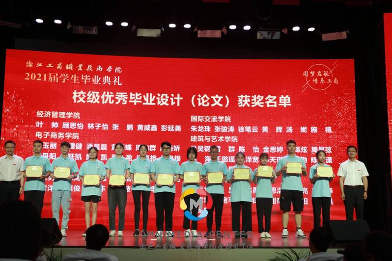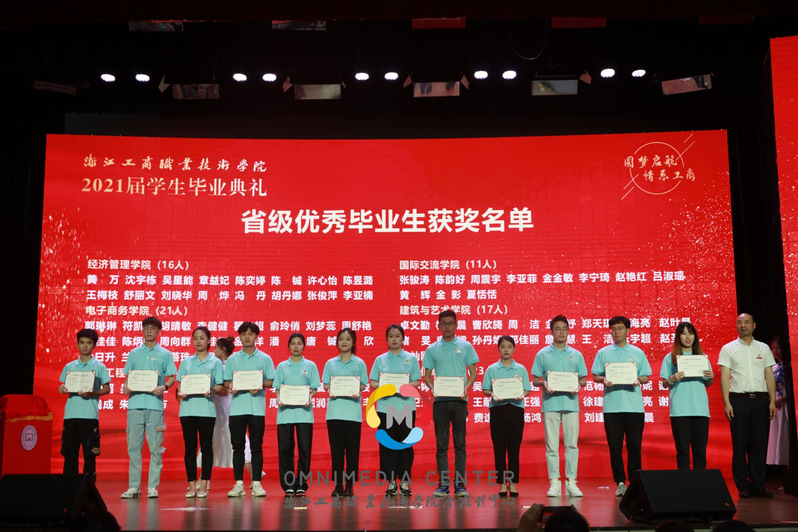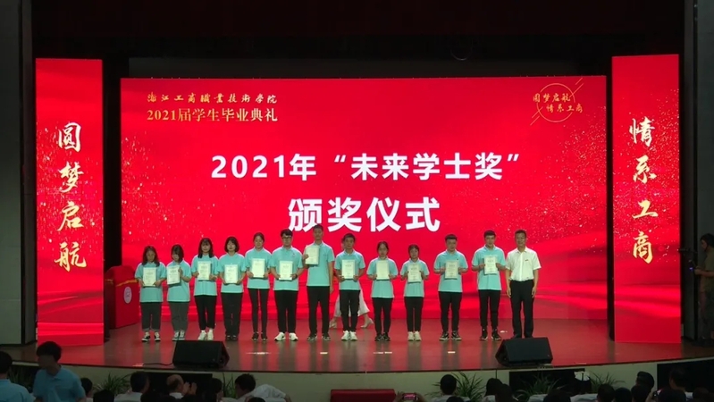 典礼现场还进行了隆重的颁奖仪式。校级优秀毕业论文、校级优秀毕业生、省级优秀毕业生、未来学士奖学金获奖代表纷纷上台领奖。