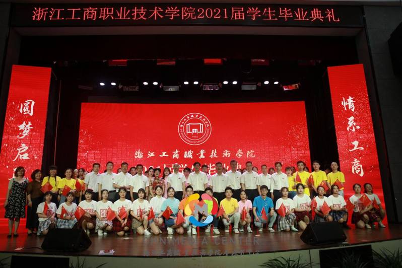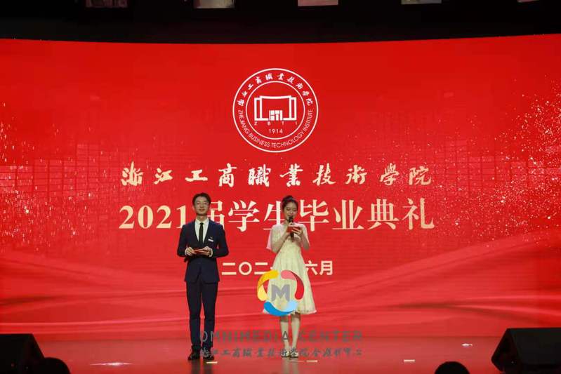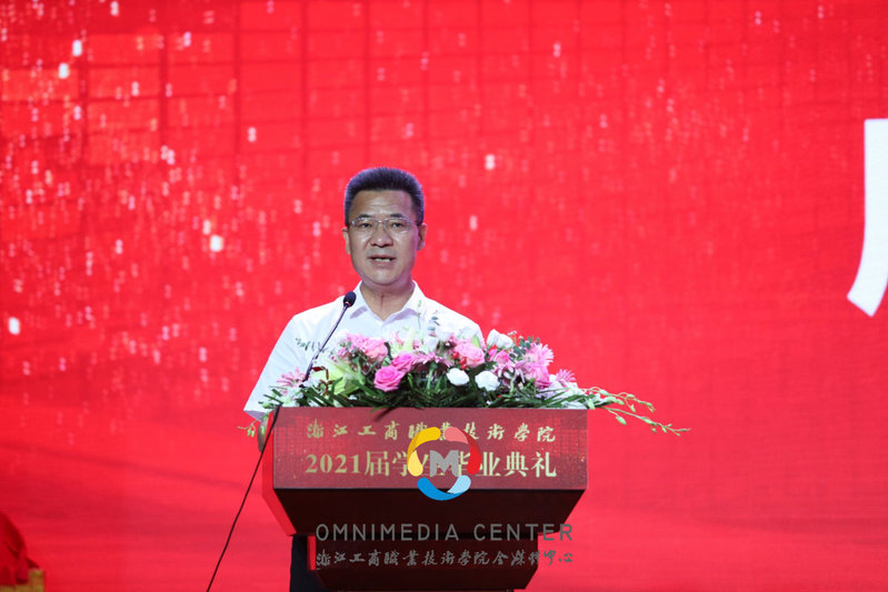 六月的工商,郁郁葱葱,生机盎然。6月9日上午10时,浙江工商职业技术学院2021届学生毕业典礼在博学楼报告厅隆重举行,全体校领导、各相关职能部门负责人、各二级学院院长(副院长)、党总支书记(副书记)、辅导员、毕业班班主任代表、2021 届毕业生代表等齐聚一堂,共同见证这一难忘时刻。典礼由党委副书记俞位增和学生代表共同主持。