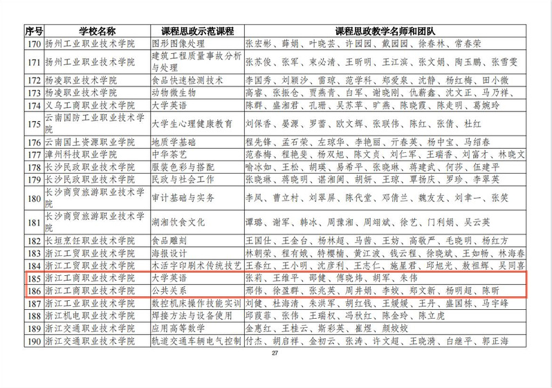 近日,教育部公布了2021年课程思政示范项目名单,我校《大学英语》《公共关系》2门课程获评“课程思政示范课程”,2个教学团队同时入选“课程思政教学名师和团队”。