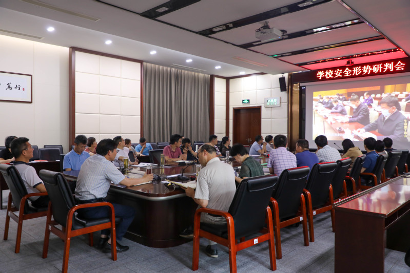 6月18日上午,在至诚楼111会议室召开学校安全形势研判会,校领导班子、各部门负责人、二级学院党总支书记参加会议,会议由校党委副书记俞位增主持。