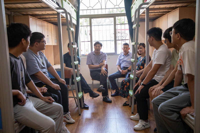 6月23日下午,党委书记陈仕俊前往学生社团和学生寝室看望学生并与学生亲切交谈。党委办公室、学生工作部、团委负责人陪同。