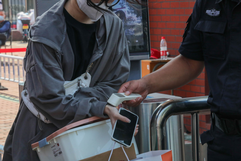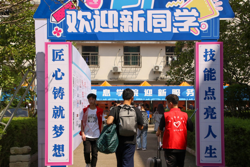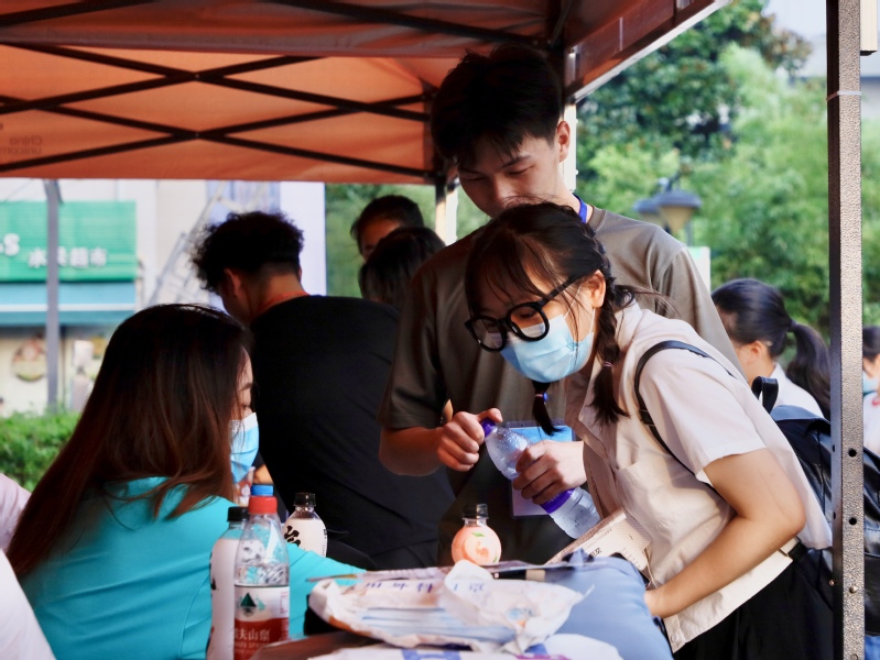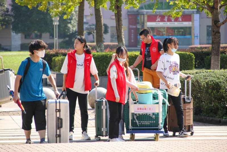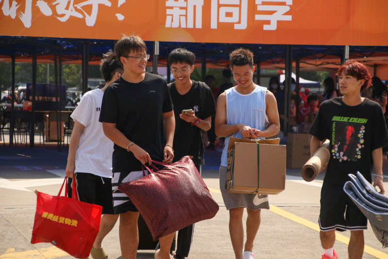 报到当天,学校在东大门、图书馆共青广场分别设置新生报到点,还根据学院设置了不同的专属入校通道。在志愿者和现场保安的引导下,新生们在确认进校码、健康码、行程码均为“绿码”(省外及近14天有省外旅居史的学生还需提供48小时内的核酸检测报告),且经手腕测温和热成像人体测温仪测温正常后入校,报到现场井然有序。