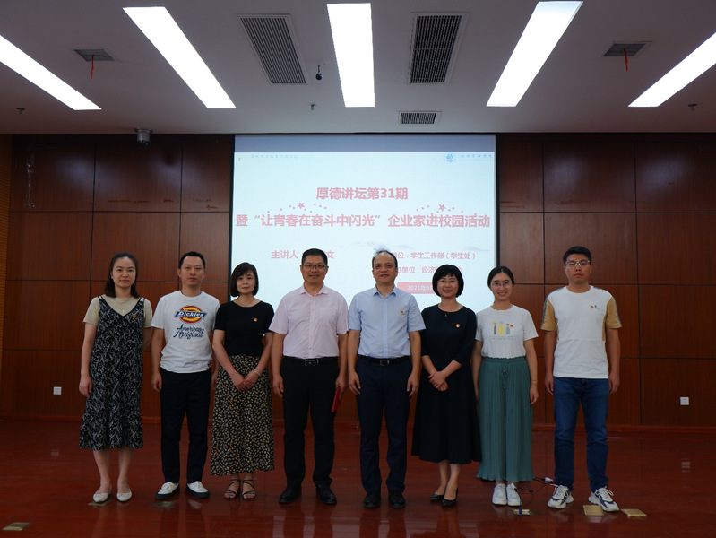 为进一步激发学生成长动力,规划职业发展目标,把准人生发展航向,由学工部主办、经济管理学院承办的我校第31期厚德讲坛暨“让青春在奋斗中闪光”企业家进校园活动近日在中和楼217如期举行,经济管理学院党总支书记励业、学工部副部长包培红、经济管理学院全体辅导员、学院学生代表等参加了本次活动。本次讲座由经济管理学院党总支副书记丁佩芬主持。