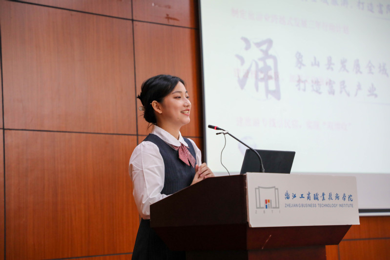 我校赖林秋同学从“甬”字出发,通过“涌、踊、拥”三字释义,讲述了象山“发展全域旅游、打造富民产业”缩小地区差距,奉化打造共同富裕“滕头模式”缩小城乡差距和宁波创新灵活就业支持方式缩小收入差距三个案例,看共同富裕带来的民生变化。