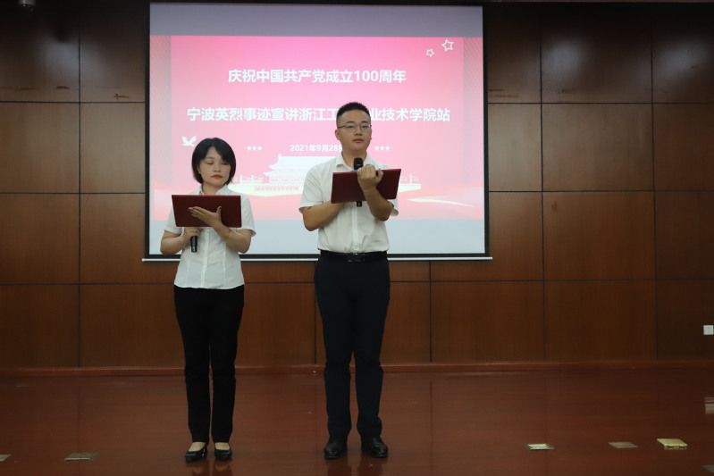 2021年9月28日下午,由宣传部、学生工作部主办、经济管理学院承办的第32期厚德讲坛暨宁波市英烈事迹宣讲团进校园活动在中和楼217如期举行。宁波樟村四明山革命烈士陵园服务中心主任陈志斌、宁波市英烈事迹宣讲团成员,校宣传部部长陈军强、经济管理学院领导班子以及学院全体师生党员、2021级新生代表等参加了本次活动。本次活动由经济管理学院党总支书记励业主持。