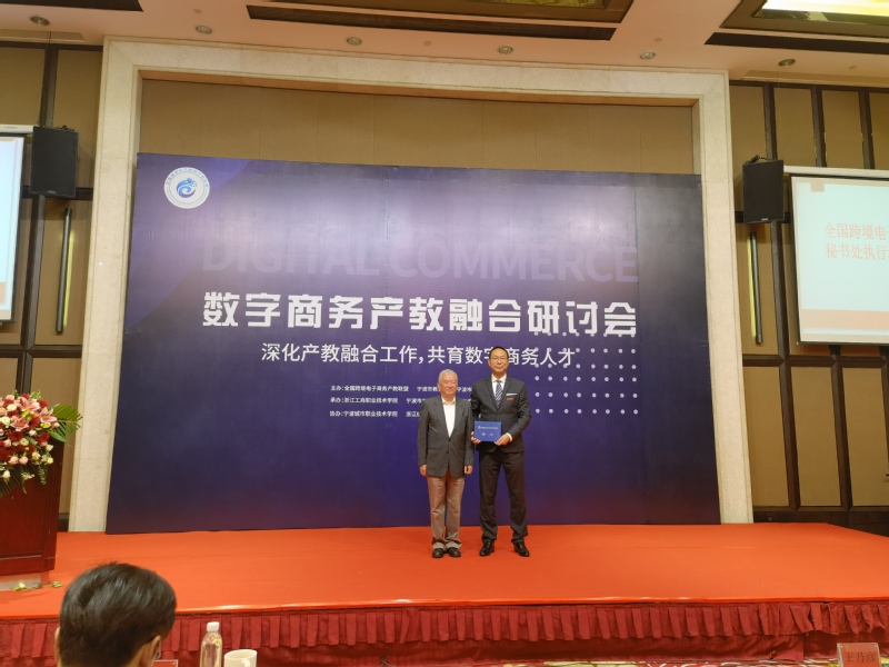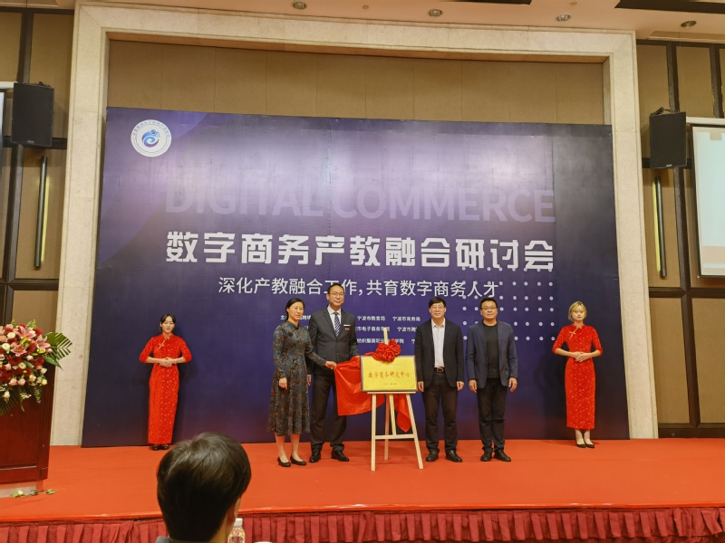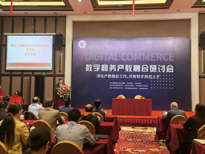 10月27日,由全国跨境电商产教联盟、宁波市教育局和宁波市商务局主办,我校承办的2021年数字商务产教融合研讨会在宁波顺利召开,全国外经贸行指委常务副主任委员王乃彦、宁波广电集团副总裁李可、学校党委书记陈仕俊、宁波市商务局电子商务处处长涂晓锦、宁波市教育局高等教育处二级调研员佘志诚、学校副校长兼全国跨境电商产教联盟秘书长徐盈群、宁波市跨境电商协会秘书长谢尚伟等领导出席,来自全国20余家大中专院校和企业等单位百余人参加会议,会议同步开通线上直播,累计近五千人次在线观看。开幕式由徐盈群主持,报告会由全国跨境电商产教联盟执行秘书长楼晓东主持。