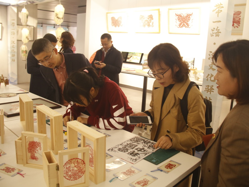 随后,评估组专家还赴“一带一路•汉文化驿站”展示现场参观,观看汉服社学生的现场展示、汉文化驿站建设作品展示。