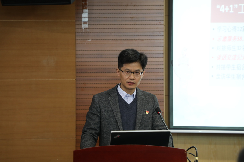 11月26日上午,学校在中和楼1007召开2021年党总支书记抓党建工作述职评议会。 学校党建工作领导小组成员和各党总支委员、支部书记代表、党员代表共80余人参加会议。各党总支书记以PPT形式逐一述职,党委副书记俞位增进行述职点评,党委书记陈仕俊作总结讲话。会议由党委委员、工会主席、组织部、统战部部长谢骏主持。