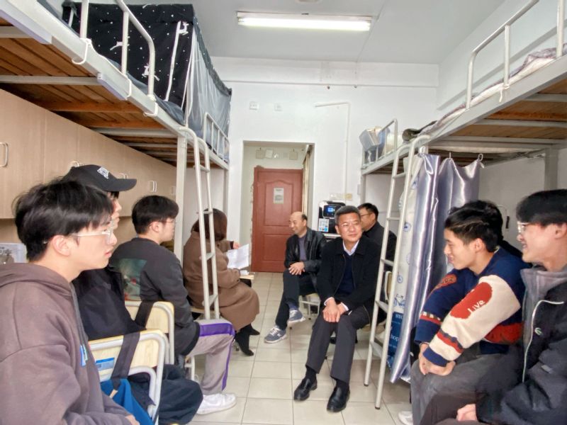 本次座谈会举办前,相关职能部门负责人先期陪同校领导分别走访了学生宿舍,为同学们送去了关怀和温暖。同时一并走访了辅导员办公室、值班室和学生功能房,深入了解辅导员工作情况和寝室阵地建设情况。