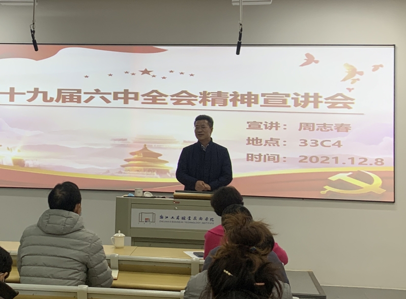 为深入学习贯彻党的十九届六中全会精神,分众化、全覆盖开展“六学联动”“六讲六做”活动,近日,校领导班子成员分赴联系分院和所在支部,就党的十九届六中全会精神作专题宣讲。